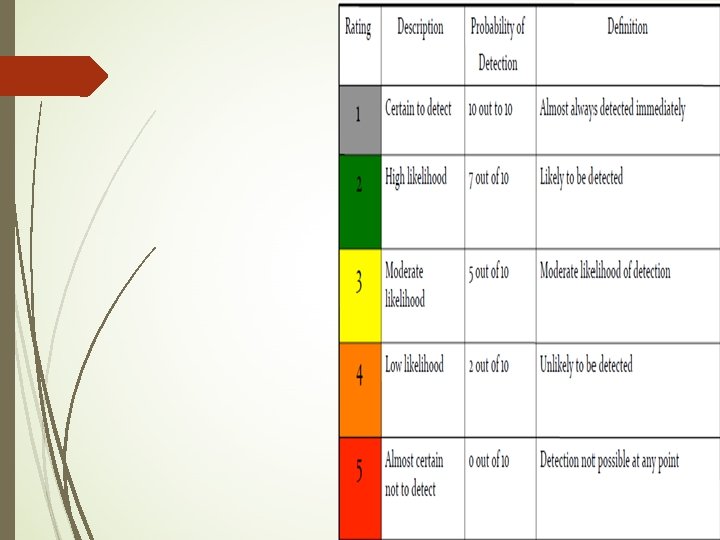 Pendeteksian Mungkin Tidak mungkin 10 5 1 Berapa besar kemungkinan kita mendeteksi masalah sebelum itu memberi efek pada pasien ? 10 = Tidak mungkin 1 = Pasti