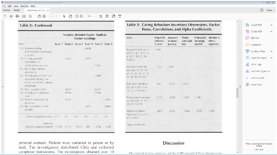 Construct Validity: Convergent validity ◦ two or more tools that measure the same construct are administered at same time to same subjects; demonstrated by high correlations between scores (r = + 0. ? ? ) Construct validity of the convergent type was tested using the CBI-E and Cronin and Harrison’s Caring Behaviors Assessment (CBA), a 62 -item instrument (Baldursdottir & Johsdottir, 2002; Cronin & Harrison, 1988) with authors' (Cronin & Harrison) permission. Fourteen senior citizens residing in an independentresiding residence participated. A moderately strong, non statistically significant correlation (r =. 50, p =. 06) was calculated between the total scores of the CBI-E and CBA. . There was a significant, positive, moderate correlation between the caring scores (Modified Caring Dimensions Inventory [CDI-29]) and empathy (Toronto Empathy Questionnaire) scores (r = 0. 5, p = 0. 001)