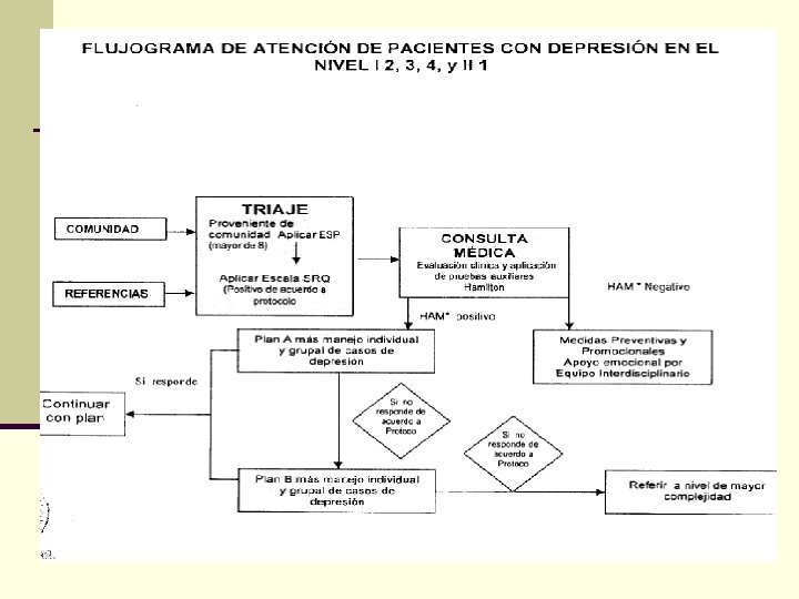 ESCALA DE HAMILTON PARA DEPRESION Consideraciones de diseño que limitan su utilidad clínica n Fue diseñada antes de los Criterios diagnósticos de Investigación (R. D. C. ) y del Manual Diagnóstico y Estadístico (DSM-III). n No incluye por ello síntomas que son criterio para el diagnóstico de depresión como anhedonia.