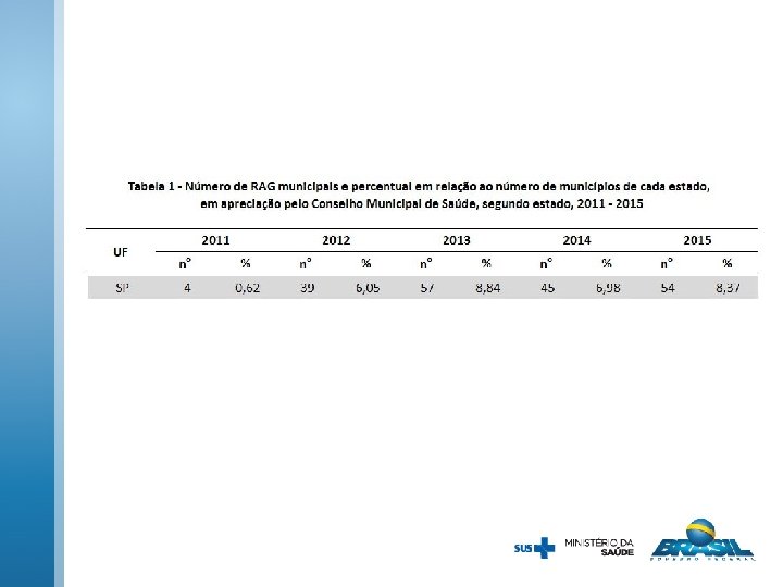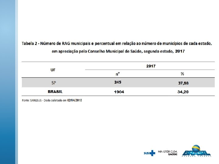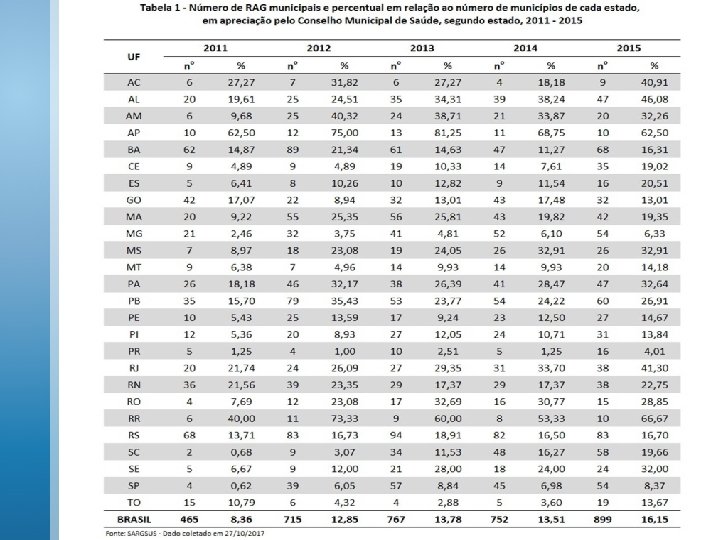 NOTA TÉCNICA Nº 1 -/2018 -DAI/SEAD/DAI/SE/MS Situação de Entrega dos Relatórios de Gestão e Pendências nos Conselhos de Saúde Objetivo: apresentar a situação dos municípios e estados brasileiros quanto ao encaminhamento do relatório anual de gestão (RAG) aos respectivos conselhos de saúde, considerando-se os seguintes status: em apreciação pelo Conselho de Saúde; sem informação e solicitado ajuste, para anos de 2011 a 2015 e uma análise particular para o ano de 2016, por ser tratar do relatório atual. Os dados foram extraídos do Sistema de Apoio ao Relatório de Gestão (SARGSUS).