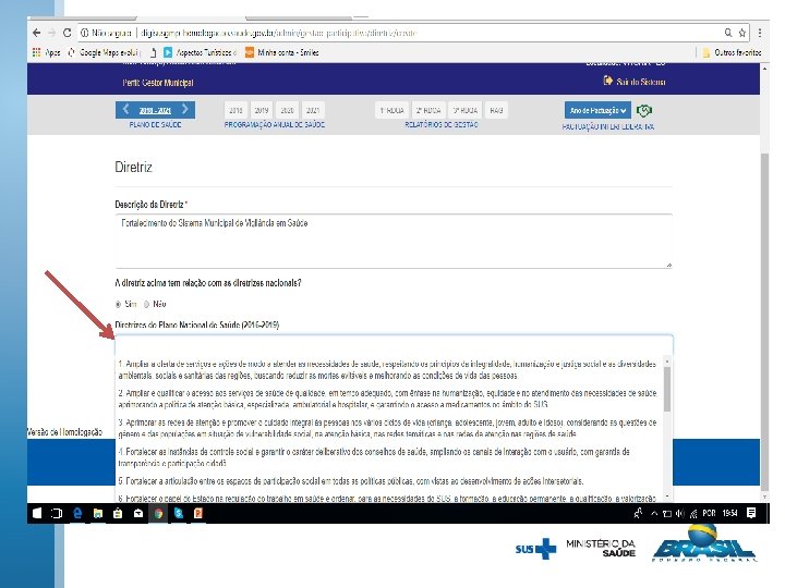 Registro do ano da última conferência de saúde Registro das diretrizes