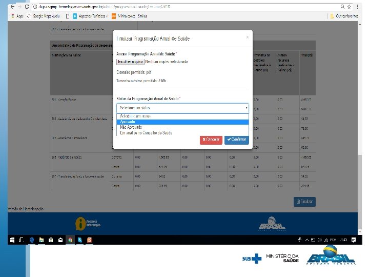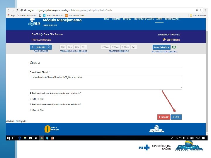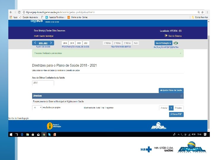 Será solicitado a inserção de documentos relativos ao plano de saúde, resolução de aprovação de diretrizes. Se o plano de saúde estiver aprovado pelo conselho de saúde, será necessária a inserção da resolução de aprovação.