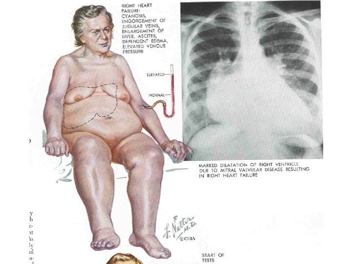 Insuficiencia C. Derecha: • • Náusea, anorexia Ascitis, anasarca Dolor hepático de esfuerzo Edema periférico, postural Venas varicosas y pulsátiles Ingurgitación facial Pulsación de vasos de cara y cuello