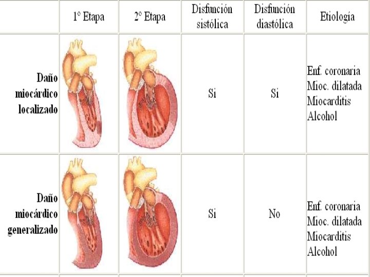 DISFUNCION SISTOLICA: • Disminución de la función de bomba, con disminución de la fracción de expulsión (< 50%). • Etiología: Cardiomiopatía dilatada, Cardiopatía Isquémica, Hipertensión, Valvulopatías.