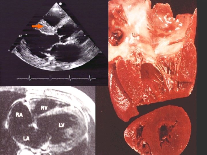 Examen Físico: • • Ataque al estado general Disnea Cianosis periférica Presión del pulso disminuida Aumento del pulso venoso yugular Hepatomegalia, ascitis, edema Pulso alternante