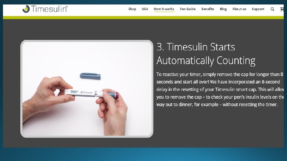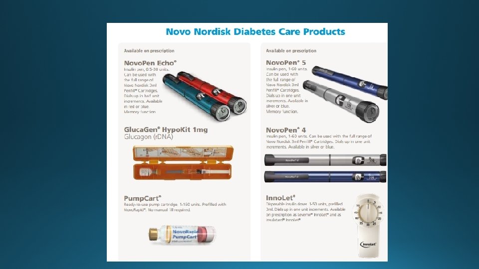 Large push button with low resistance Maximum dose 50 units Clear & uncomplicated dial, dials forward and back Large-scale numbers Audible clicks 1 unit increments Contains 300 units Novolin® 70/30, NPH, or R Novo. Fine® disposable needle Needle storage compartment Support shoulder