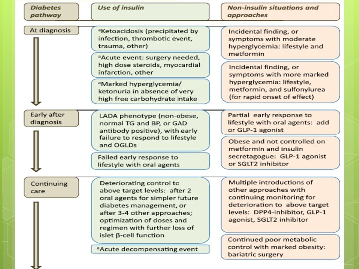 Initiation of Insulin therapy 3 - When catabolic features , including : weight loss or ketonuria , are present , implementation of insulin therapy is considered mandatory.