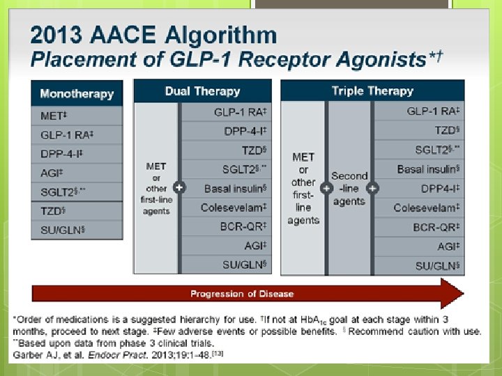 Current However opinion , the 2013 AACE algorithm and consensus statement offer expanded recommendations , including a discussion on the initiation of insulin in patients with an A 1 C to other as low as therapies. 7. 5% , as an adjunct
