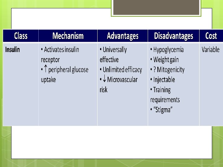 Glargine & Detemir , detemir is associated with slightly less weight gain and a higher average unit requirement when dosing. Comparatively The main drawback to the long-acting insulins is increased cost. ( Expensive )