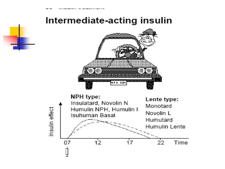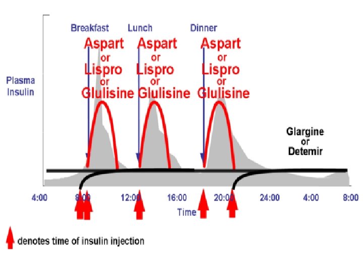 Insulin in type 2 diabetes n n n once daily NPH I injection at night only long-acting insulin analogue added to oral hypoglycaemic agents once daily Mixtard 30 Twice daily NPH I Twice daily Mixtard 30 Basal plus meal-related regimen using glargine plus aspart or lispro.