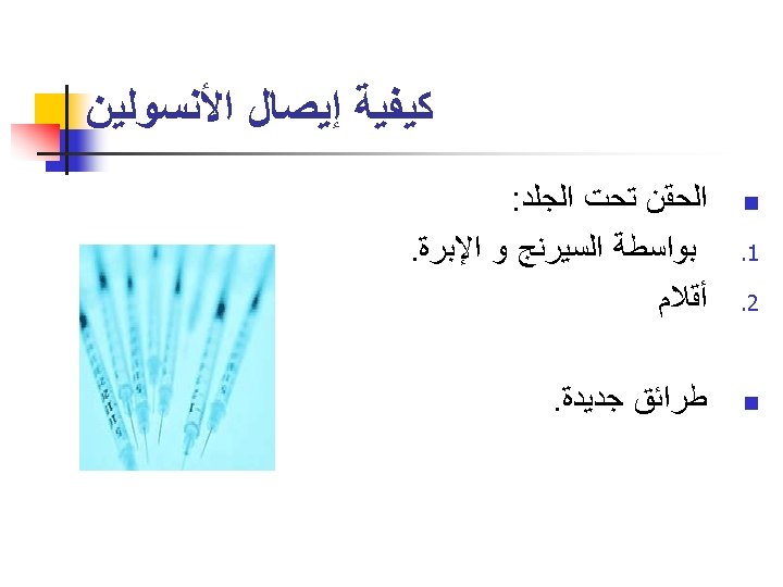 Insulin injection devices n Syringes