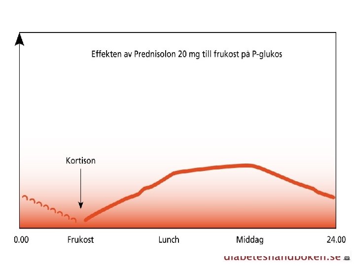 Ann 43 år (3) Återbesök diabetessköterska 3 mån • Kommit upp till 22 E NPH-insulin till natten och har fastevärden 7 -9 mmol/l. Vikt oförändrad. • Hb. A 1 c stigit till 100! • Mätt fler blodsocker och stiger långsamt över dagen plus toppar 5 -6 mmol efter måltid. Hypoteser om hennes dåliga blodsockerkontroll?