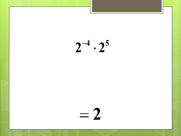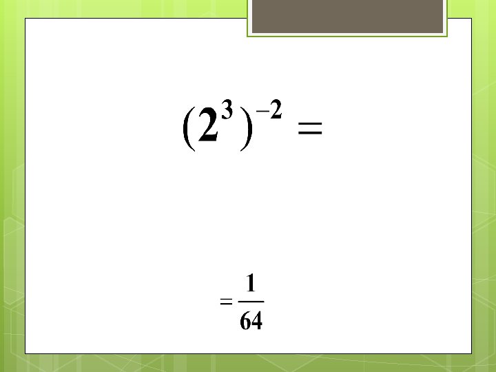 Practice 1) 2) 3) 4) 5) (-4)2 73 -54 101 95 6) (-2)0 7) (-2)-1 8) 0 -3 9) 3 -4 10) (¼)0