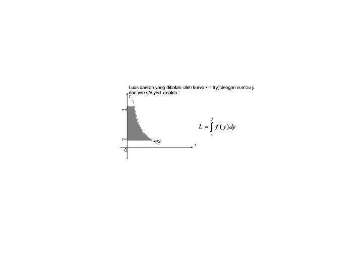Kesimpulan Daerah yang dibatasi oleh kurva y=f(x), dengan sb x dari x=a s/d x=b Y=f(x) Y adalah: o X=a X=b X