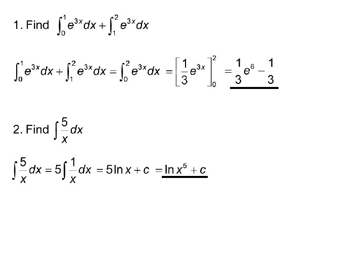 A definite integral is where limits are given. This gives the area under the curve of f `(x) between these limits. Practise can be had by completing page 70 Exercise 1 A and 1 B TJ exercise 1