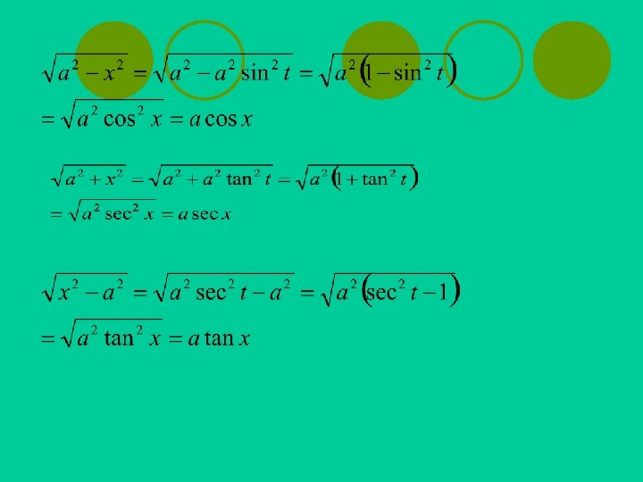 Integral dengan bentuk l Pengintegralan bentuk dilakukan dengan menggunakan subtisusi dengan x = a sin t, x = a tan t , x = a sec t. Sehingga diperoleh bentuk-bentuk seperti ini