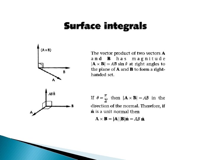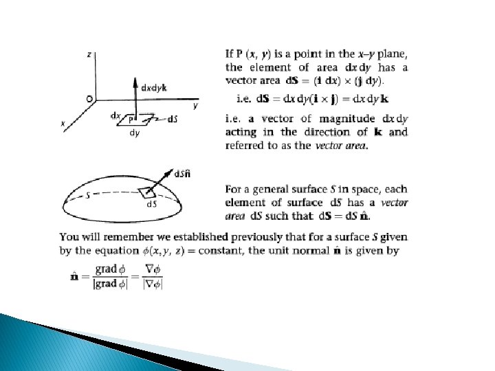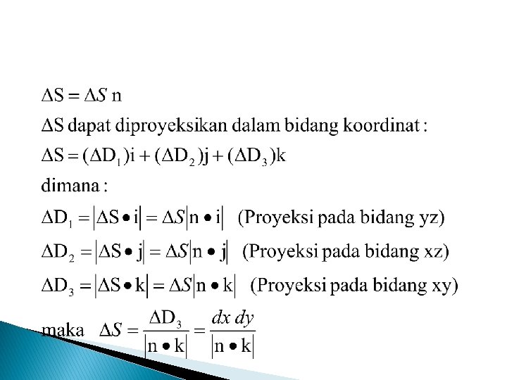 Berkaitan dengan permukaan kecil d. S dari permukaan S dapat dibayangkan adanya sebuah vektor permukaan d. S yang besarnya sama dengan d. S dan arahnya sama dengan n (normal) sehingga vektor permukaan d. S adalah : d. S = n d. S