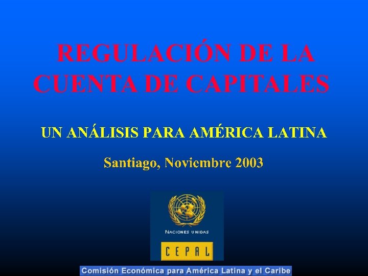 ¿Cómo pueden los países en desarrollo beber de las aguas de los mercados internacionales de capital sin ahogarse en ellas? . . . Rogoff, 2002 Nuestra opinión respecto a esta temática: 1. Los países en desarrollo tienen espacio y “deben” aplicar una política “soberana” de regulación de los flujos de capital de corto plazo en la era de la globalización. 2. Construir la gobernabilidad financiera internacional para los países Latinoamericanos, creando una institución financiera global dentro de la ONU: + Para aumentar la “representatividad”de los países latinoamericanos. + Para que opere como “prestamista de última instancia” durante las crisis financieras internacionales.