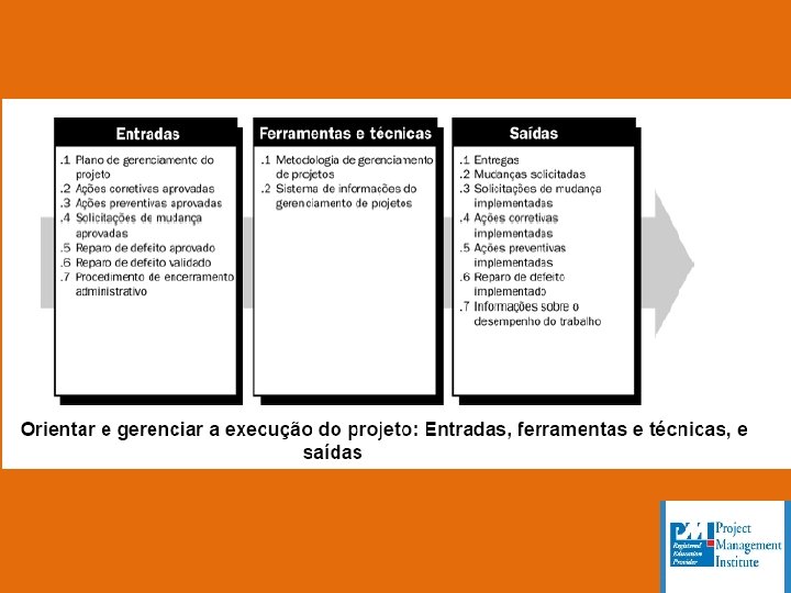 Entradas – Termo de Abertura do Projeto • Autoriza formalmente o projeto – Declaração do Trabalho do Projeto – Fatores Ambientais da Empresa – Ativos dos Processos organizacionais
