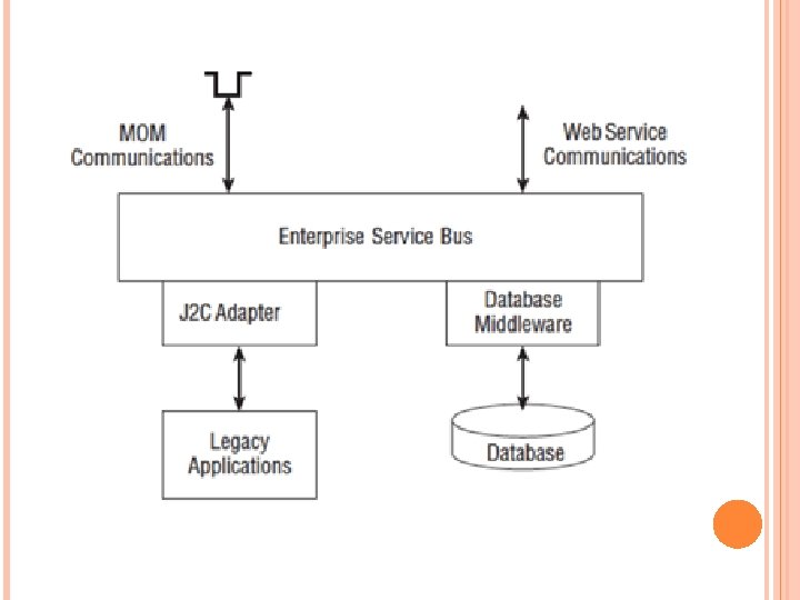 G. ENTERPRISE SERVICE BUS Suporta majoritatea mecanismelor de integrare prezentate mai sus, ofera suport pentru diverse tipuri de middleware Magistrala are o arhitectura deschisa, bazata pe standarde introduse de servicii Web, combinate cu produse traditionale EAI, evitand natura lor proprietara, complexitatealor sau inflexibilitatae furnizorulor Ofera capacitati de transformare Sustin dezvoltarea independenta a serviciilor