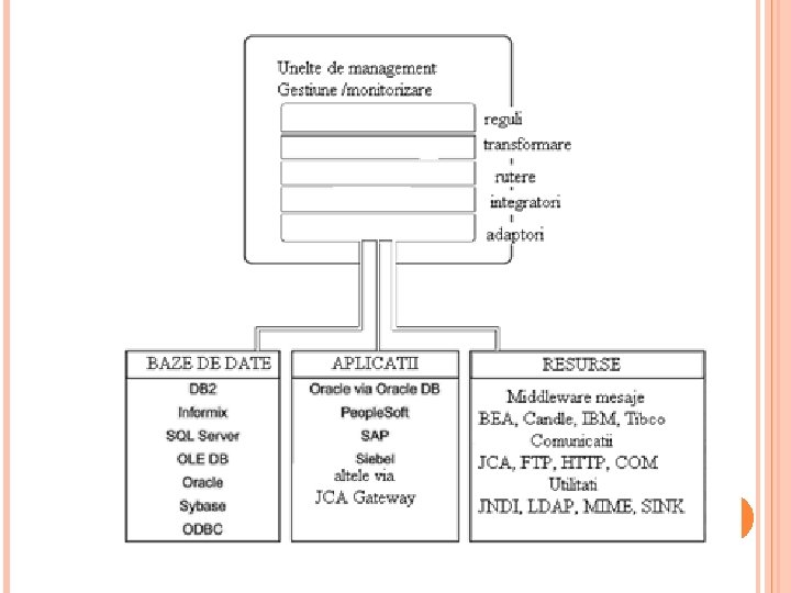 ADAPTORI JCA/J 2 C PENTRU INTEGRARE Adaptoare disponibile in prezent: pt ERP (SAP, Oracle, Baan, JD Edwards etc), SGBD (Oracle, DB 2, SQL Server etc), sisteme de mesagerie (Web. Sphere MQ, Rendezvous TIBCO) etc