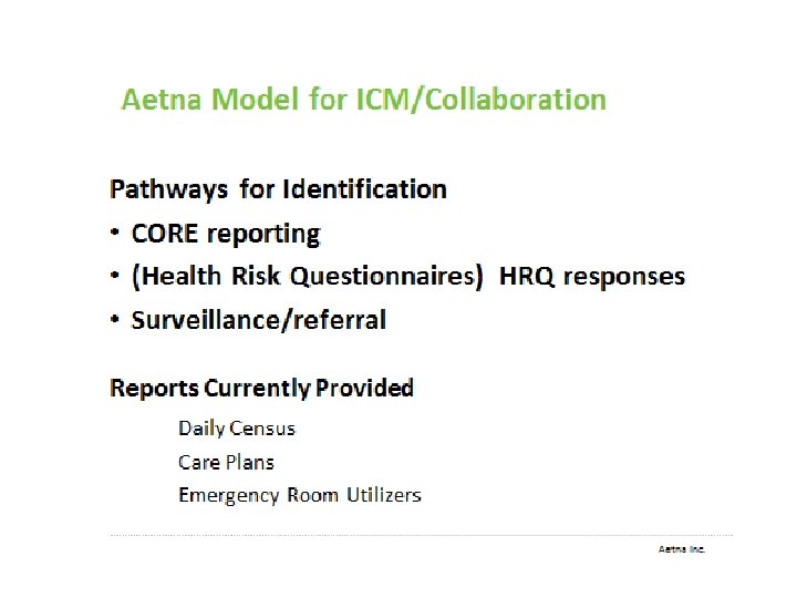 Integrated Care Model Case Management: § Member centric - One case manager approach to all member care needs § integrated care model (incorporates behavioral, medical and social) § Utilizes CORE and Predictive Pathways Modeling (PPM) to identify and stratify member Embeds CM in large practice facilities § Incorporates onsite NICU CM, face-to-face for highest level of care members as well as telephonic outreach Focus : • top utilization and highest risk • ED utilization • Hospital readmission • High risk disease management • Neonatal Abstinence (NAS) • Hepatitis C