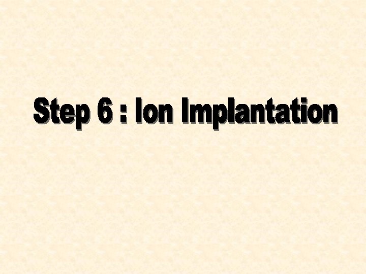• Silicon wafers are placed in a vacuum chamber and scanned under high energy dopant ions. • Ions accelerated at 20 to 25 Kv. • They penetrate at a small distance in the wafer. • The depth of penetration increases with voltage. A Typical ion implanter