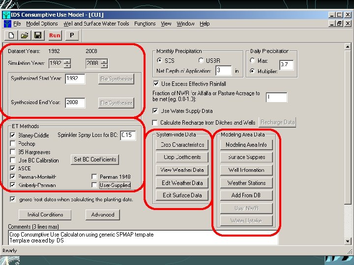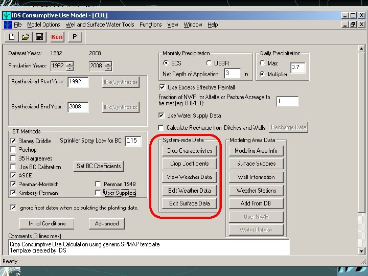 Consumptive Use Modeling As a result of that effort the Integrated Decision Support Group (IDS) has developed a model that is widely used to calculate ET called IDSCU.