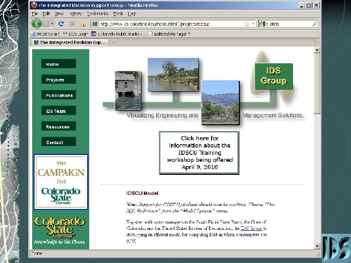 IDSCU is distributed through the web and maintained with funding from NCWCD, CAES and Cooperative Extension. Model can be downloaded at: www. ids. colostate. edu/projects/idscu