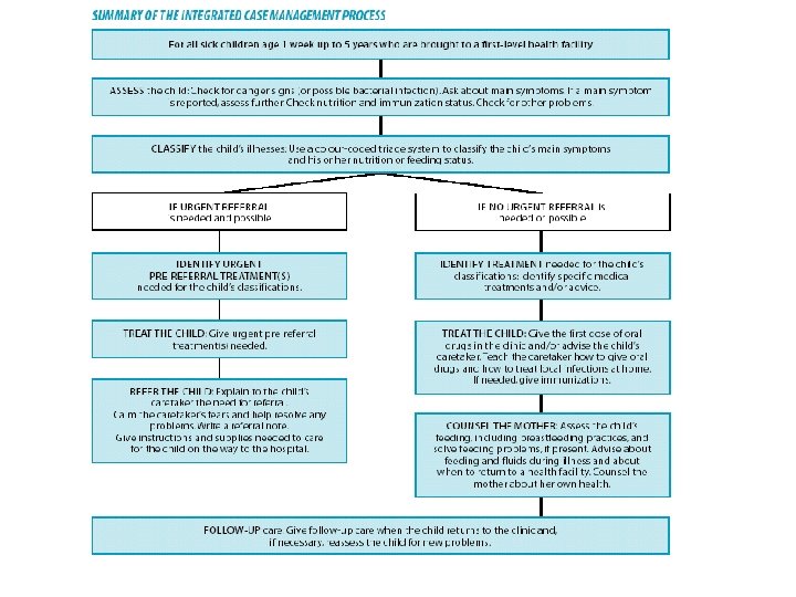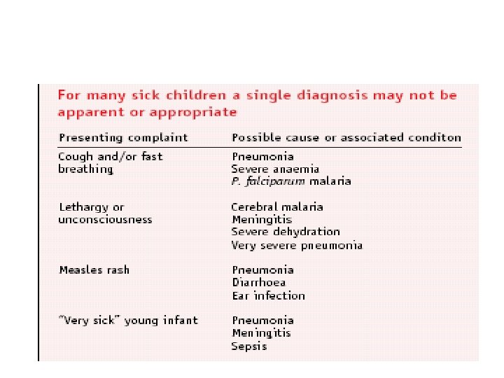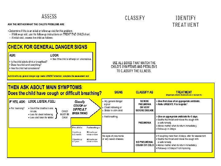 Rationale for an Integrated Evidence. Based Syndromic Approach to Case. Management • Overlapping signs and symptoms • Single diagnosis is not possible or appropriate • Improvements in child health are not necessarily dependent on the use of sophisticated and expensive technologies • Careful and systemic assessment of common symptoms and well-selected specific clinical signs provide sufficient information to guide rational and effective actions