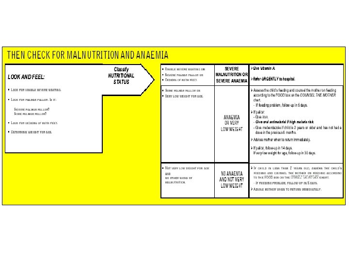 Feeding problem & Malnutrition • Not able to feed. Possible serious Bacterial Infection or severe malnutrition • Feeding Problem or Low weight • No Feeding Problem