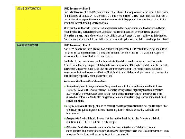 Treatment of Sick Young Infants Urgent pre-referral treatments • Convulsions • possible serious bacterial infection • &/or severe dehydration or some dehydration with low weight • &/or severe persistent diarrhoea/ dysentry with low weight • &/or not able to feedpossible serious bacterial infection or severe malnutrition • Severe dehydration • For all infants before referral: - prevent low blood sugar -warm young infant • Diazepam (0. 2 mg/kg) • Phenobarbitone (20 mg/kg)<2 weeks of age • First dose of antibiotic • gentamicin (5 mg/kg)+ampicillin (100 mg/kg), or ceftriaxone (100 mg/kg) or cefotaxime (50 mg/kg) • Plan C