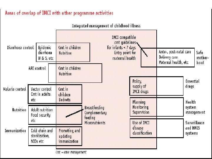Components of Integrated approach • Improvement in case management skills of health staff through locally-adapted guidelines • Improvements in overall health system • Improvements in family and community health care practices