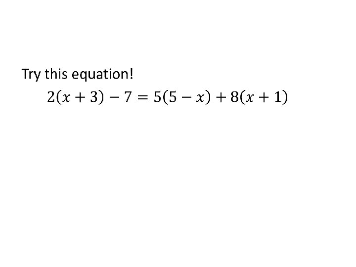 • Steps #2 and #3 can be summed up by saying SIMPLIFY EACH SIDE OF THE EQUATION!