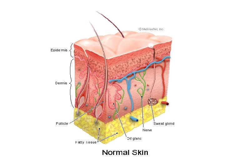 Skin is the largest organ of the body 17, 000 sq cm –average adult Function: • Protection -prevent vs dehydration, microbes, UV radiation, physical insult • Regulate Temperature • Vitamin D synthesis • Information about environment – extension of the nervous system