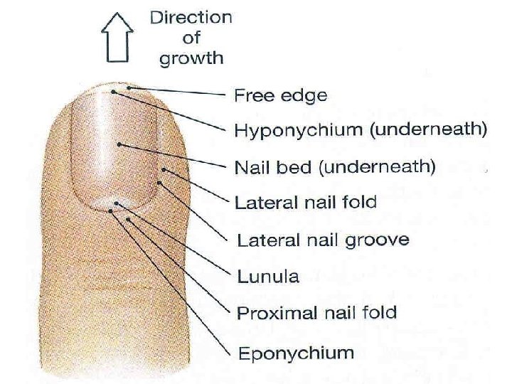 Margo liber Corpus unguis Perionyx ? Vallum unguis Lunula Eponychium