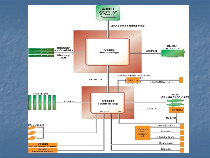 Chipset n n Most advanced chipset for the AMD CPU Consists of the VT 8235 Southbridge and the VT 8377 Northbridge.