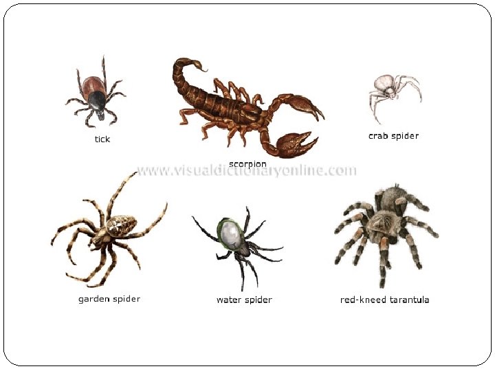 2. Arachnids- such as spiders have two body regions called the cephalothorax and the abdomen plus four pairs of legs 3. Centipedes and millipedes-long, thin, segmented animals a. centipedes- predators with one pair of jointed legs per segment b. millipedes- plant eaters with two pairs of jointed legs per segment 4. Crustaceans- water animals such as lobsters usually having two pairs of antennae,