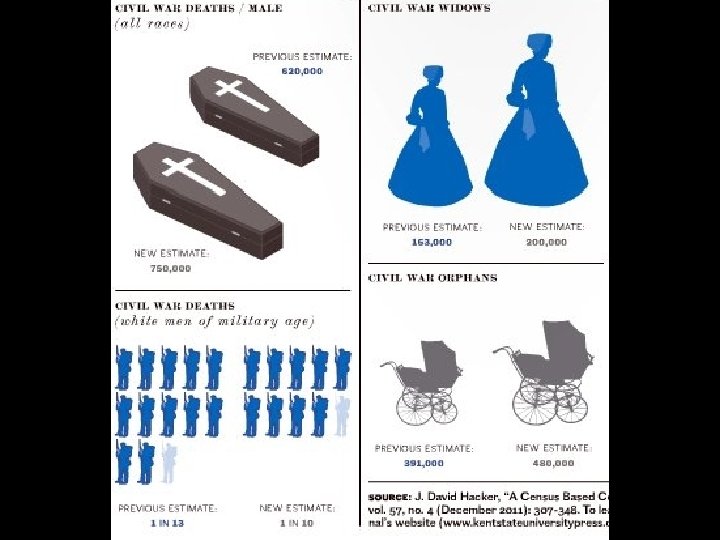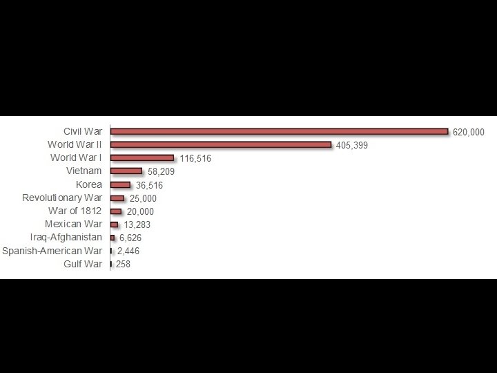 End of the War • Numbers vary on total deaths during the war, but at least 620, 000 soldiers died • Some estimates are as high as 750, 000 • Around 2. 5 -3% of the American population died during the war!