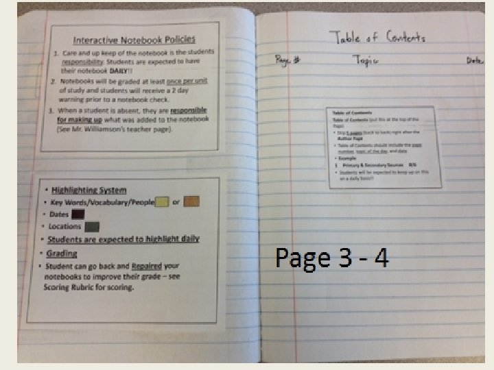• Highlighting System • Key Words/Vocabulary/People • Dates • Locations or • Students are expected to highlight daily • Grading • Student can go back and Repaired your notebooks to improve their grade – see Scoring Rubric for scoring.