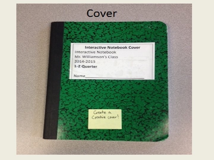 Interactive Notebook Cover Interactive Notebook Mr. Williamson’s Class 2014 -2015 1 -2 Quarter Name____________ -------------------------*add the above to the cover of your notebook along with a creative cover