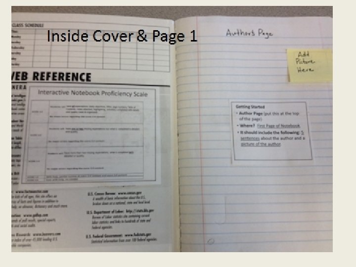 Getting Started • Author Page (put this at the top of the page) • Where? First Page of Notebook • It should include the following: 5 sentences about the author and a picture of the author.