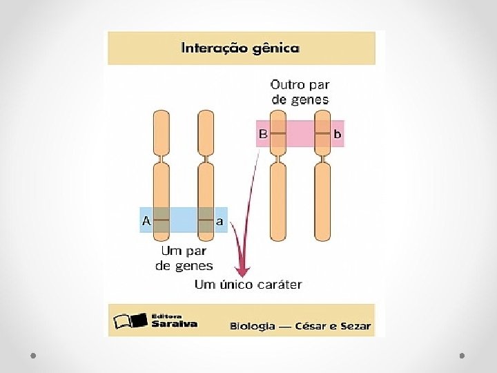 INTERAÇÃO GÊNICA • Algumas características podem ser condicionadas por mais de um par de genes em interação. • Um determinado fenótipo é devido ao processo de interação entre dois ou mais pares de genes alelos.