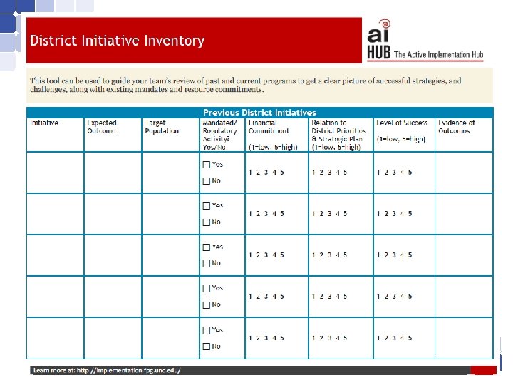 Purpose of ISF Implementation Inventory § To assist school and community partners in their installation and implementation of ISF § To assess baseline and/or ongoing implementation progress of critical ISF features § To inform action planning that advances and enhances ISF implementation § To measure ISF implementation fidelity