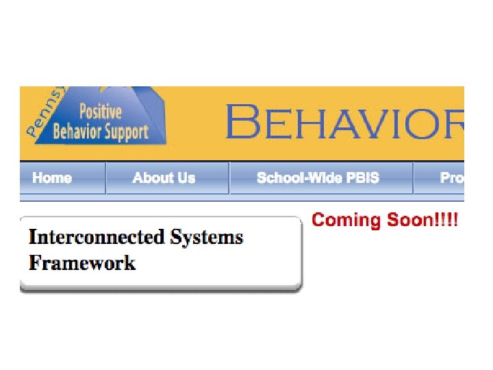 An Interconnected Systems Framework § A Structure and process for education and mental health systems to interact in most effective and efficient way. § guided by key stakeholders in education and mental health/community systems § who have the authority to reallocate resources, change role and function of staff, and change policy.