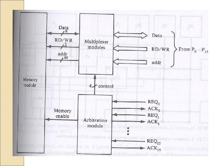 After the processor receives the ACK, it initiates its memory operation. The multiplexer module multiplexes data, address of words within the module and control signals from the processor to the memory module using a 16 to 1 multiplexer.