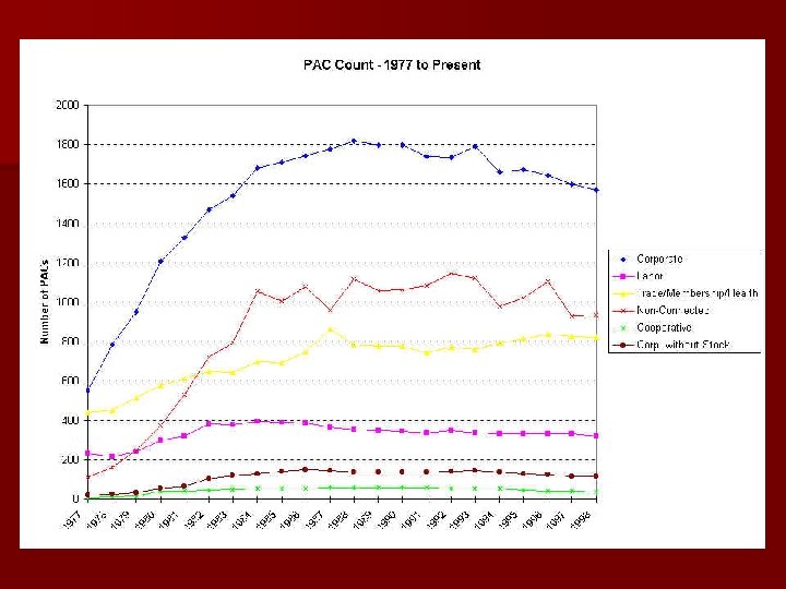 Goal: Form Political Action Committees (PACs) n Organizations, formally independent of candidates themselves – channel money from interest groups to political candidates sympathetic to their groups' policy preferences Electioneering experts who aid candidates financially with member support n Blossomed as a result of FECA of 1974 n Buckley v. Valeo created the “PAC man” n Most money goes to incumbents n