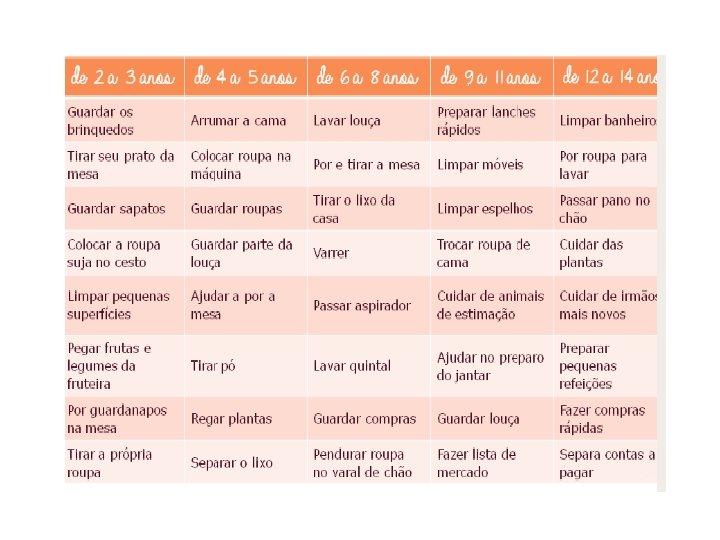 Domínios esquemáticos, tarefas evolutivas e esquemas iniciais 0 – 2 anos • 1º Domínio: Aceitação e Pertencimento. 2 – 4 anos • 2º Domínio: Senso de Autonomia e Competência; • 3º Domínio: Limites Realistas. 4 – 10 anos • 4º Domínio: Respeito aos desejos e aspirações (expressão emocional); • 5º Domínio: Responsabilização, Regras e Autonomia.