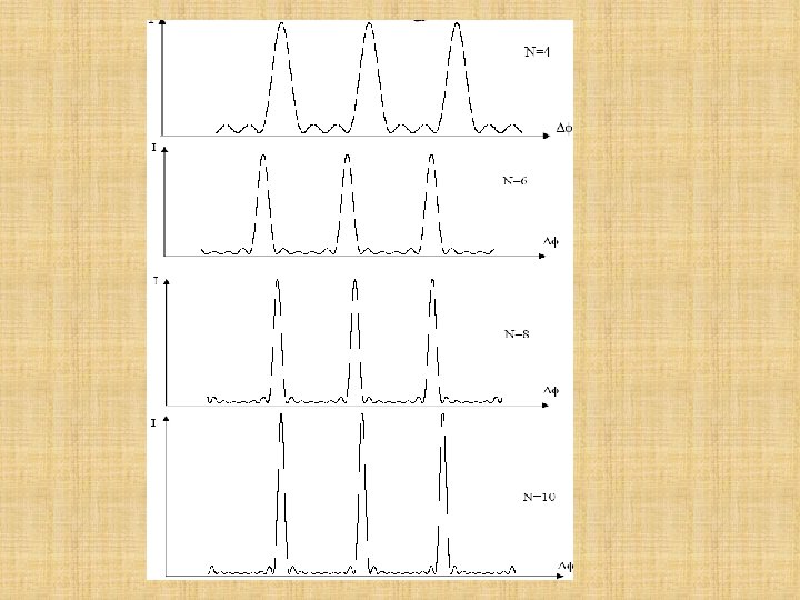 § Semakin jauh celah maka Δφ semakin besar. § Beda fase antara dua gelombang yang masuk ke celah secara berurutan menghasilkan Δφ = k. Δr Fungsi gelombang : Fungsi gelombang di titik P merupakan perpaduan gelombang cahaya yang melewati celah 1 sd N, maka: