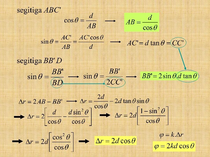 Intensitas maksimum utama (primer) dicapai bila dengan m bilangan bulat